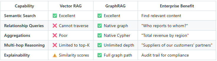 ✅ “GraphRAG enables complex relationship reasoning”