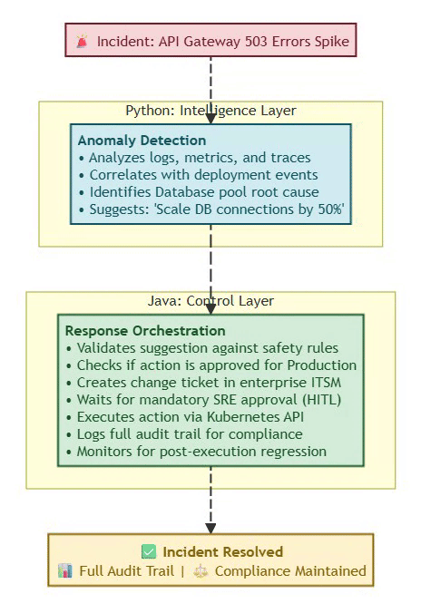 ✅ “Java orchestrates Python intelligence with enterprise controls”