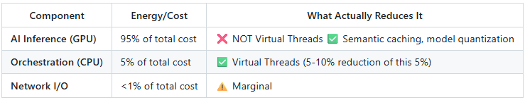 // ❌ MARKETING CLAIM: "Virtual Threads save 80% energy in AI"