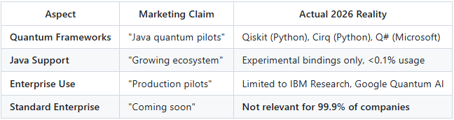 ❌ “Quantum Java is production-ready”
