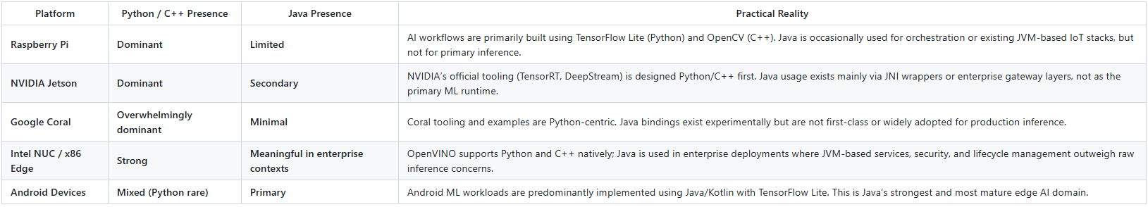 ❌ “Edge AI dominated by Java”