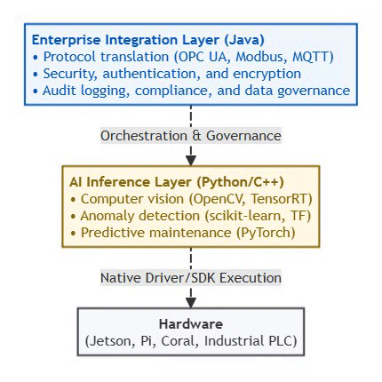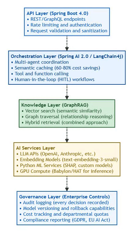 Java = Control Layer: Provides the enterprise guardrails (governance, compliance, safety, cost control)